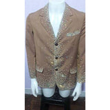 This is a typical men's samba jacket, made in Brazil with hand applied/glued acrylic crystals and rhinestones. There are 3 main sizes, Small, Medium and Large. Pair it with one of our sparkly men's samba shirt, vest and pants and you are ready to look like a ***"Malandro" sambista! Traditionally a Malandro will use a white jacket and a stripped red/white t-shirt and white men's samba shoes, however in a more sophisticated event or in a group a black, dark attire is required.