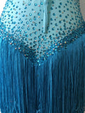 Why we love this look? This is a great update on your samba look. Romper with long sleeves, fringes, cutouts, embellishments and rhinestones. It's what the ladies in the samba world uses nowadays so we have it here for you. As always we can make pretty much any color you wish.