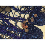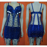 This is a beautiful blue, embellished samba show-dress. Hand made, sparkly and ready to ship.