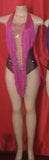 We love the extra long fringes, the transparency of the black one piece and clustered rhinestones on the bust area