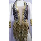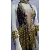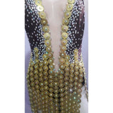 Why we love this look? This is so different than most of our looks! It has these beautiful gold coins with a center crystal to sparkle with every samba move!