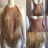 Gorgeous one piece all sparkling and unique. This is a all eyes on you outfit with fringes and tiny sequins. This is made to impress.