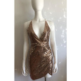 Why do we love this look? It’s a classic samba sparkling dress that has a beautiful deep V cut in the chest and bare backless cut. It shines and it has tons of sparkles.