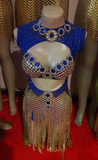 We keep an eye on what the local passistas are wearing in Rio and São Paulo so we simply loved this look! What's not to love? It has a beautiful bust line with sparkling hand made stone work, it has a nice shimmery fringed skirt, it has open cuts on the chest and tummy area and a nice neckline!