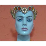 This is one of the most sparkling and dashing passista dress ever. Embellished with so many crystals and medallions, it's just beautiful!! It has separate arm sleeve, so you can wear it with or without the sleeve, sparkly back with leather strap, neck piece and tiara. The hem is beautifully decorated with acrylic stones