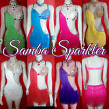 This is a true "passista" dress that is made to last. This Lycra body is designed for you samba professional dancer. It's fun, comfortable and sparkly.