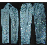 It's a beautiful way to gracefully show your arm routine and leg routine as the sleeves are added by crystals and embellished carefully, adding each stone by hand. Some more elaborate costume are done with a transparent mesh-like fabric with tiny little added crystals. This is a typical Brazilian accessory that has been lasting and around for many years. Some have cut-outs and embellishments around their designs, others extend towards the fingers, like a glove. It varies!