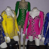Some samba dancers needs a more glamorous show stopping samba wear so that they can be noticed. This is a beautiful addition to your samba collection. If you are looking for a long sleeve yet an authentic samba dress from Brazil, we have it! We can make in any color or in group quantities. This is a bit longer than most min dress we sell. We believe that not all occasions asks for a short dress, so this is a great option. If you wish to make it shorter,please notate the order.