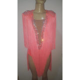 Another beautiful summer over the top fringe samba dress! It has so much movement and abundant fringes. This is such an exclusive design for our shop. We made the fringes longer, we added mini shoulder pads, we added more crystals and rhinestones on the hip line and we made the back fringes longer. It's all thinking on you dancer.