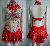 Cutout styles are very popular within the samba community as these samba dancers wants to show their toned bodies and steel abs. This is an elegant look, handmade with many hand cut mirror plates, acrylic stones and rhinestones.