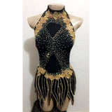Why we love this look? It's very classy and elegant. It has the beautiful swirl flames cutouts creating movements and style.The top has an athletic cut with rhinestones decor on the chest and abs area. The choker like neck lines creates a final touch to the front look. We also love the back vertical line straps.
