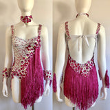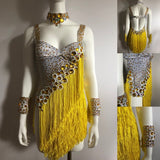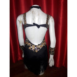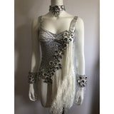 Why we love this dress? Over 5 meters of endless fringes and abundance of stones and tiny crystal glued one by one. Gorgeous pair of cuffs and neck piece. This is a true Passista fringe dress that represents the true roots samba dancer of Brazil.