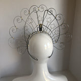 Please note that every crown we make comes with a removable feather or plumage insert. You may notice on the photo a black small tube. That is where the insert will go. This is a great way to easily remove your feathers for not only easy transportation but change the colors of feathers and types of feather. If you wish not to have this accessory please notate the order.