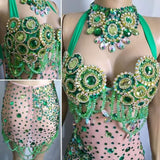 This is one of the most sparkling and dashing passista dress ever. Embellished with so many crystals and medallions...you can wear it with a beautiful headdress, simple tiara or hair appliqué. Add a samba arm sleeve to match and you are set. Pair it with a Samba gladiator or samba dance shoes and you are set!
