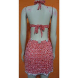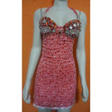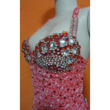 Classy dress for samba night rehearsals. This dress has a nice lycra lace that is hand applied with tiny crystals in red and clear silver. The bikini top bustiê has many sets of crystals of all sizes on red-silver tones. For easy closure, the dress can close on the back neck and lower back, showing 3 beautiful crystal appliqué that does not scratch you when you dance. The hem is delicately applied with a strass trimming making this dress one of our favorites for passistas. Ask us for different colors!