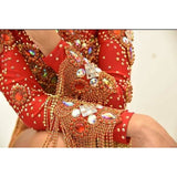 Do you have a group and need to dress them up? We can make this style in any color your wish, with any color combo. Add a beautiful headdress, arm & leg pieces and you are ready to shine. Perfect for a corporate event if you need a costume a bit more covered up.