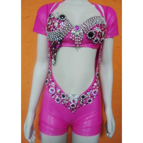 Pink & Stones Lycra Cirré Booty Shorty One Piece + Samba Gloves