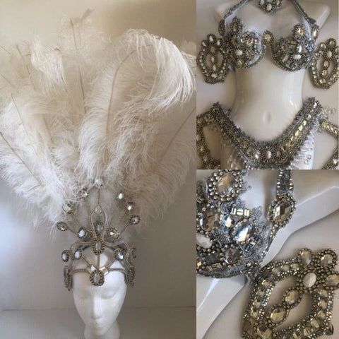 Branco Brilho Eterno Plumes Bikini Samba Costume