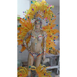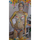 This is a true "samba" costume that is made to last. Hand made by a professional carnival atelier in Rio, this costume is designed for you samba professional dancer. It is fabricated with the best quality material, hand made with hand sewn stones, rhinestones and "crystals" of various colors and sizes.
