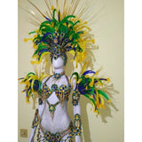 This is a true "samba" costume that is made to last. Hand made by a professional carnaval studio in Rio, this costume is designed for you samba professional dancer. It is fabricated with the best quality material, hand made with hand sewn stones, strass and "crystals" of various colors and sizes.