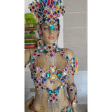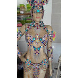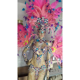 This is a true "samba" costume that is made to last. Hand made by a professional carnaval studio in Rio, this costume is designed for you samba professional dancer. It is fabricated with the best quality material, hand made with hand sewn stones, strass and "crystals" of various colors and sizes.