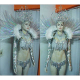 What includes in this costume: Headpiece, necklace, bra top, bikini bottom, arm sleeves, back piece, leg pieces.
