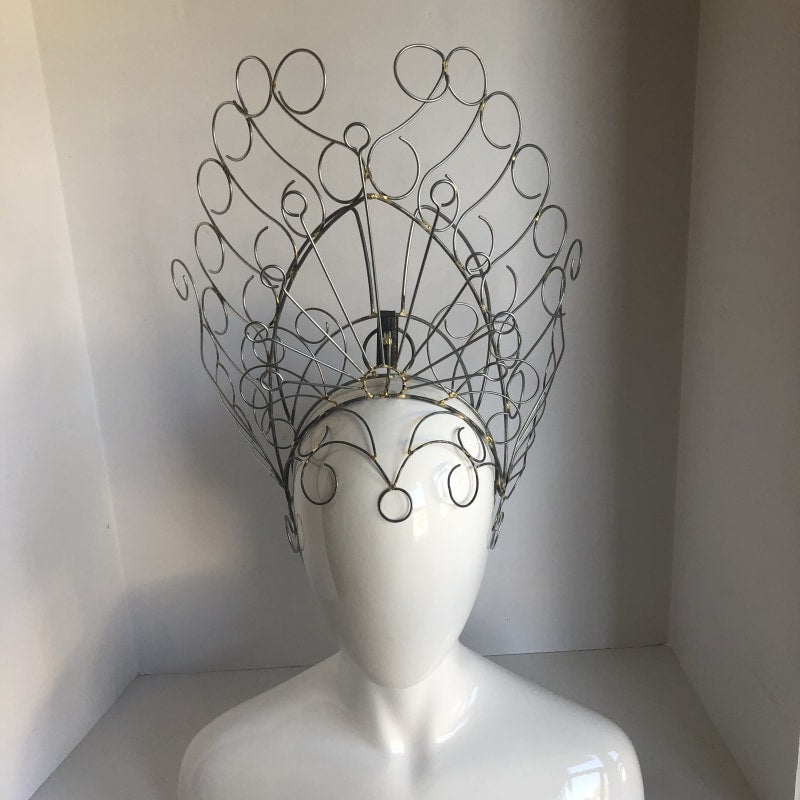 Please note that every crown we make comes with a removable feather or plumage insert. You may notice on the photo a black small tube. That is where the insert will go. This is a great way to easily remove your feathers for not only easy transportation but change the colors of feathers and types of feather. If you wish not to have this accessory please notate the order.