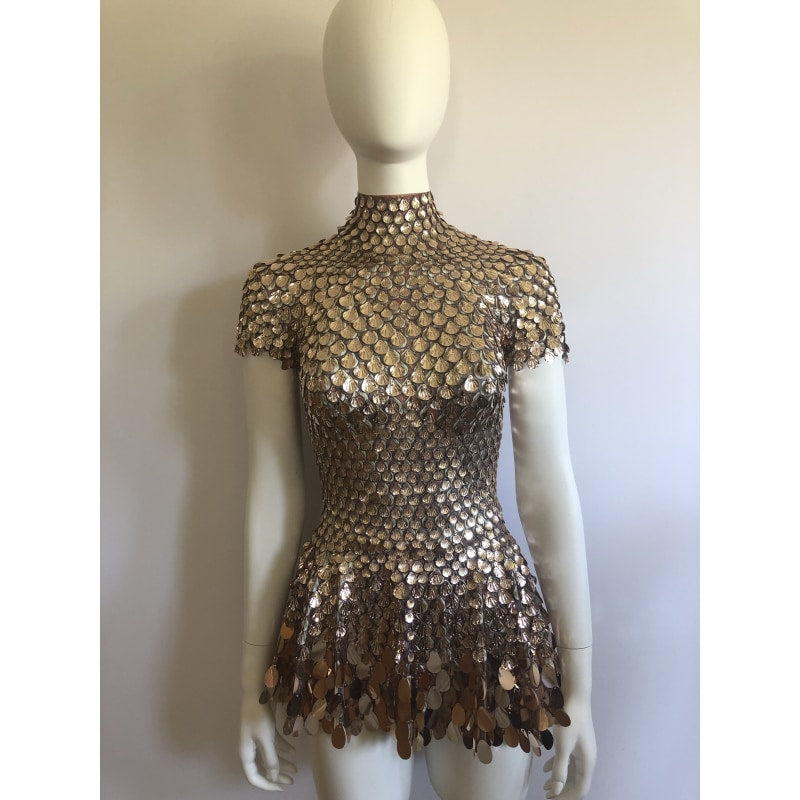 Gorgeous dress all sparkling and unique. This is a all eyes on you outfit with hand glued one by one metallic shells. This is a dress to impress