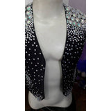 This is a typical men's samba vest, made in Brazil with hand applied/glued acrylic crystals and rhinestones. There are 3 main sizes, Small, Medium and Large. Pair it with one of our sparkly men's samba jacket, shirt, suspenders, and pants and you are ready to look a Brazilian Men's samba dancer. Most men will use it with no under shirt.
