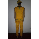 This is a beautiful set of samba wear in Brazil. You may choose many options of accessories to make your look a perfect samba outfit. Typically used in Brazil, this is a masculine sparkly complete samba outfit. This look is used in parades, shows and samba parties. It is perfect if you are a dancer, a drummer or just need a custom made outfit for your event. It is well made by one of our top carnival designer that make samba outfits for parades and celebrities.