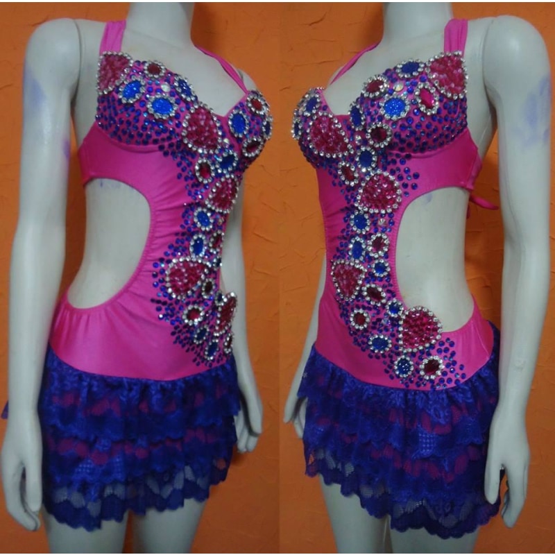 Some of the styles can be custom made to have lace with Lycra, Lycra Cirret or a specific fabric the dancer needs for her show. This designer works for many samba schools in Rio and São Paulo and professional samba dancers in the entire Brazil. We recommend dry cleaning always. Her hems are impeccable and hand made. Perfect for a diva, queen, passista who needs to rehearse before pre carnaval parade show time and has to be dressed to kill in these eye-catching dance outfits. We accept CUSTOM MADE orders, please send us an email at info@brazilcarnivalshop.com