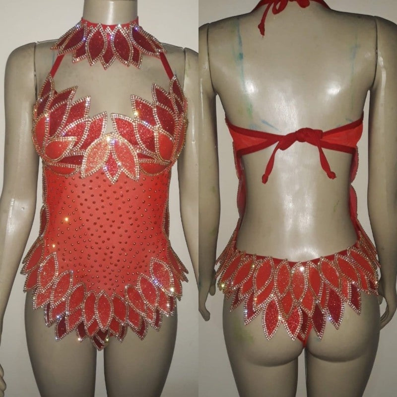 Some of the styles can be custom made to have lace with Lycra, Lycra Cirret or a specific fabric the dancer needs for her show. This designer works for many samba schools in Rio and São Paulo and professional samba dancers in the entire Brazil. We recommend dry cleaning always. Her hems are impeccable and hand made. Perfect for a diva, queen, passista who needs to rehearse before pre carnaval parade show time and has to be dressed to kill in these eye-catching dance outfits. We accept CUSTOM MADE orders, please send us an email at info@brazilcarnivalshop.com