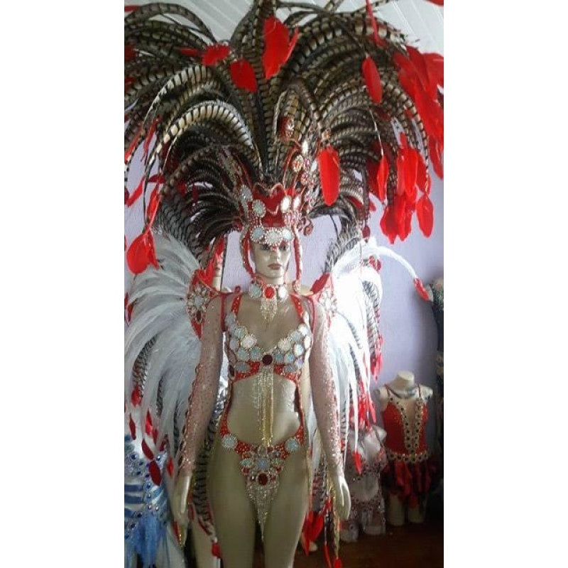 This is a luxury costume to be added to your collection. This is a timeless Brazilian samba costume. Used on a 2017 Brazil Queen competition, this costume was applauded from beginning to end. The abundant pheasants used in this costumes dictates that this luxury costume is fit for a queen!