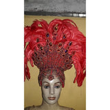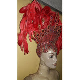 This is a luxurious headpiece that can be custom made to match the colors of your costume beads and in the feathers colors of your choice as well.