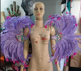 Need a pair of arm feathered piece to accentuate or add to your existing costume? We can do it!! These are custom made to match as close as possible your existing headpiece, colored feathers or bikini costume set. These arm pieces are made to order with impeccable quality and are not heavy. The stability and durability are said to be amazing. We love how this piece frames the biceps in a "fan" like shape with feathers. If you wish a different style or have seen a different pattern, send us a message and we will work with what you need and the designer.