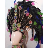 This is a luxurious headpiece that can be custom made to match the colors of your costume beads and in the feathers colors of your choice as well.