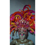 This is a luxurious headpiece that can be custom made to match the colors of your costume beads and in the feathers colors of your choice as well.