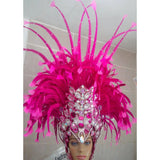 This is a luxurious headpiece that can be custom made to match the colors of your costume beads and in the feathers colors of your choice as well.