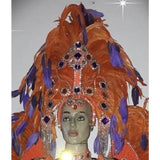 This is a luxurious headpiece that can be custom made to match the colors of your costume beads and in the feathers colors of your choice as well.
