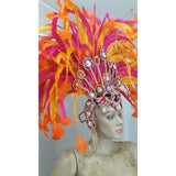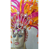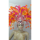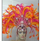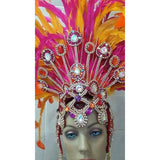 This is a luxurious headpiece that can be custom made to match the colors of your costume beads and in the feathers colors of your choice as well.