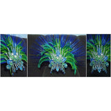 This is a luxurious headpiece that can be custom made to match the colors of your costume beads and in the feathers colors of your choice as well.
