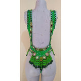 Also, we can never duplicate a costume 100%. A different stone shape and size, rhinestone thread, small beads and overall pattern of the photo above might look slightly different. Sometimes we make a costume with a specific stone shape and when we duplicate the costume, we cannot find in the market that same shape. That's the nature of the costume making. The designers do not keep a sample of each costume, they are going by photo, memory and availability of material. All 100% hand made, artisan craftsman. They are not manufactured in a production speedy way