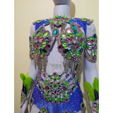 Also, we can never duplicate a costume 100%. A different stone shape and size, rhinestone thread, small beads and overall pattern of the photo above might look slightly different. Sometimes we make a costume with a specific stone shape and when we duplicate the costume, we cannot find in the market that same shape. That's the nature of the costume making. The designers do not keep a sample of each costume, they are going by photo, memory and availability of material. All 100% hand made, artisan craftsman. They are not manufactured in a production speedy way.