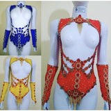 Also, we can never duplicate a costume 100%. A different stone shape and size, rhinestone thread, small beads and overall pattern of the photo above might look slightly different. Sometimes we make a costume with a specific stone shape and when we duplicate the costume, we cannot find in the market that same shape. That's the nature of the costume making. The designers do not keep a sample of each costume, they are going by photo, memory and availability of material. All 100% hand made, artisan craftsman. They are not manufactured in a production speedy way