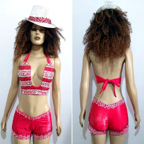 Looking for a variety of one two pieces made in Brazil? Two pieces are a top separated from the bottom, in a matching set. The set will be decorated and are usually made by a stretchy material specifically for dance, with top, skirts, long or shorts pants.