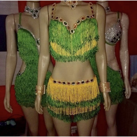 Extremely well made and worn by top samba dancers in Brazil, we added this specific collection due to ongoing requests for samba two pieces only. These designs were tested in the local samba communities and holds well after many events. If you need us to make you a special request samba outfit for your performance we can definitely work with you!