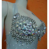 When you really want to show your excellent fit and curves, let this look take care of you. We had many customers order them for countries that are very cold and they need a more covered look for parading during the day or night, or during carnival/samba rehearsals. It is a great way to have the samba look, yet you are covered and totally bling bling. The designer used a silver Lycra Ciret, that gives a more lustrous wet look and applied tiny little stones, strass proportionally placed and "sprinkled" throughout the body suit. The lower lateral of the legs has cutouts with embellishments of strass and stones around the oval cutouts. The front bikini is heavily placed with strass, stones in iridescencent color and has 3 crystal and stone heart, one in the front and 2 laterally. Add this look with a gorgeous samba sandals and you are ready to parade!